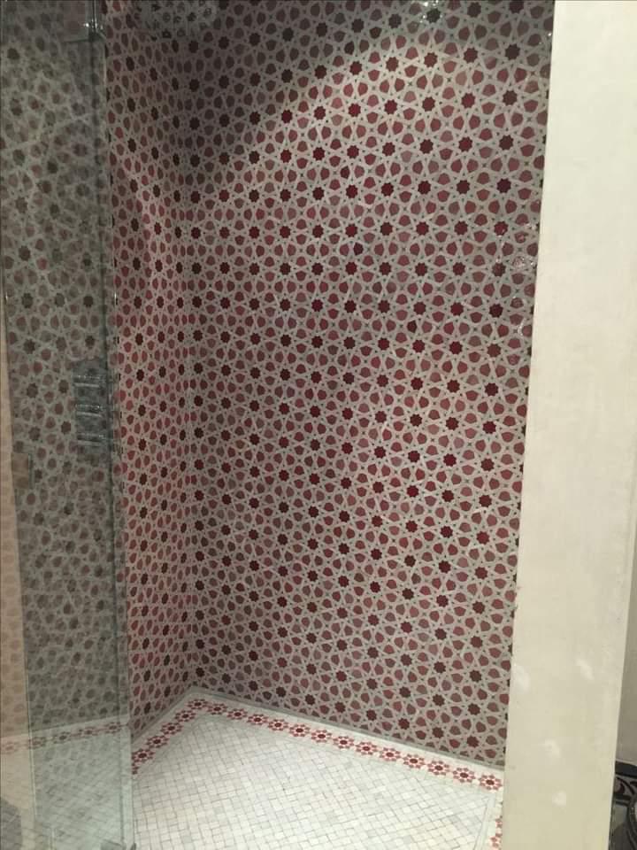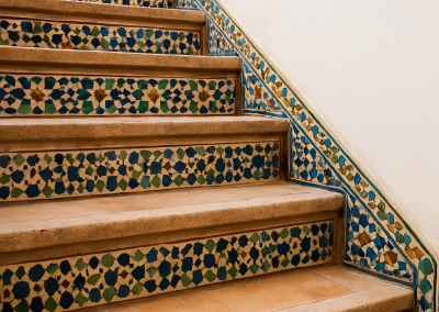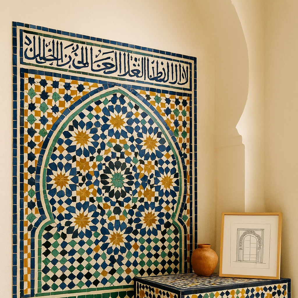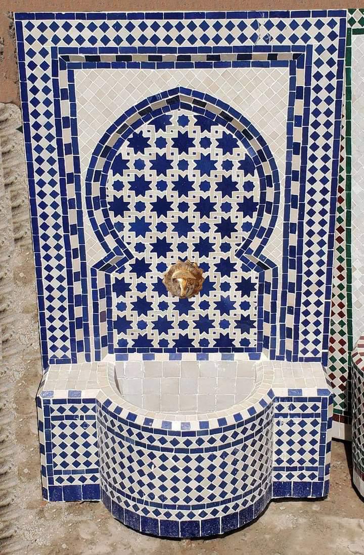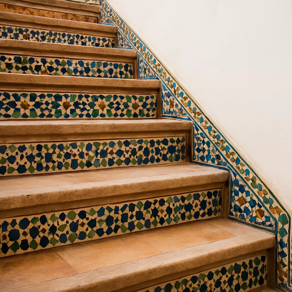 Installation experte de Zellij sur murs, sols, fontaines, patios ou escaliers. Un savoir-faire artisanal pour un rendu esthétique et durable.