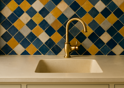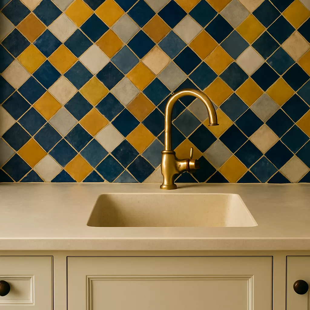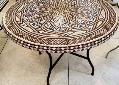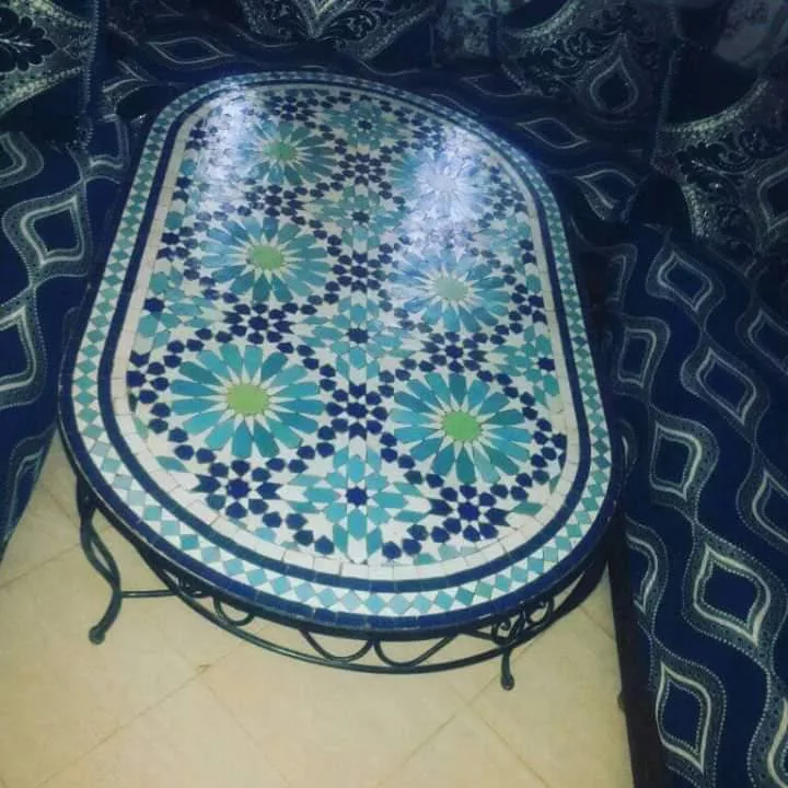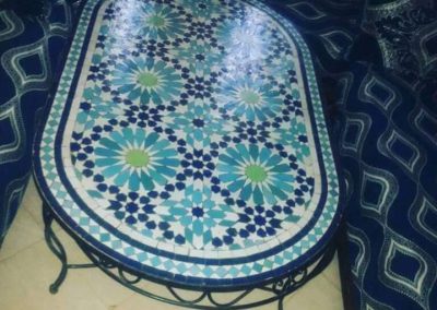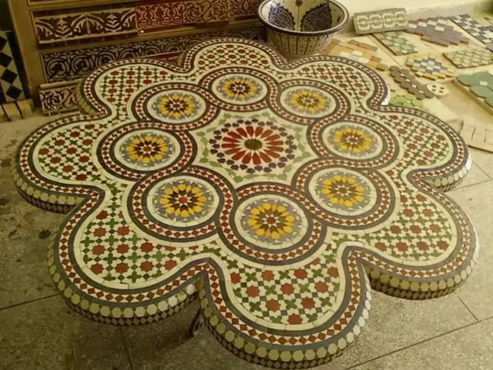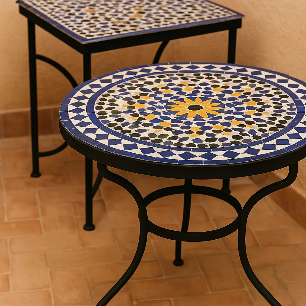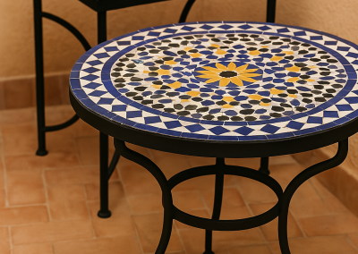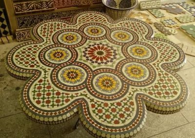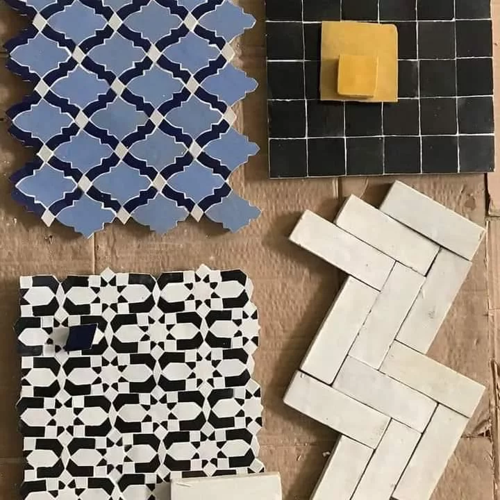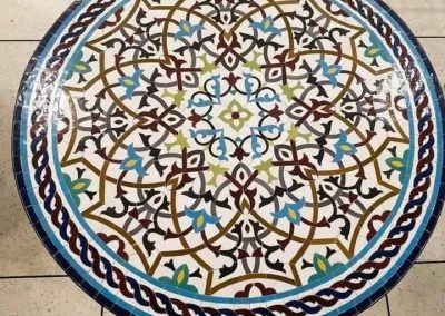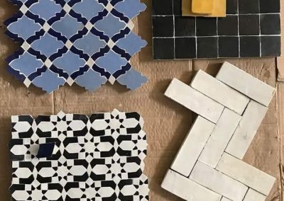 Conception et fabrication de Zellij marocain artisanal, en collaboration avec nos artisans partenaires au Maroc. Motifs uniques et personnalisables selon vos envies.