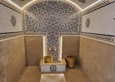 Habillage décoratif de vos espaces avec des solutions sur mesure : murs en pierre, fontaines zelliges, éléments décoratifs inspirés de l’artisanat marocain.
